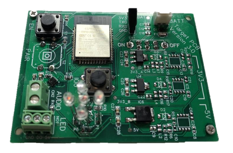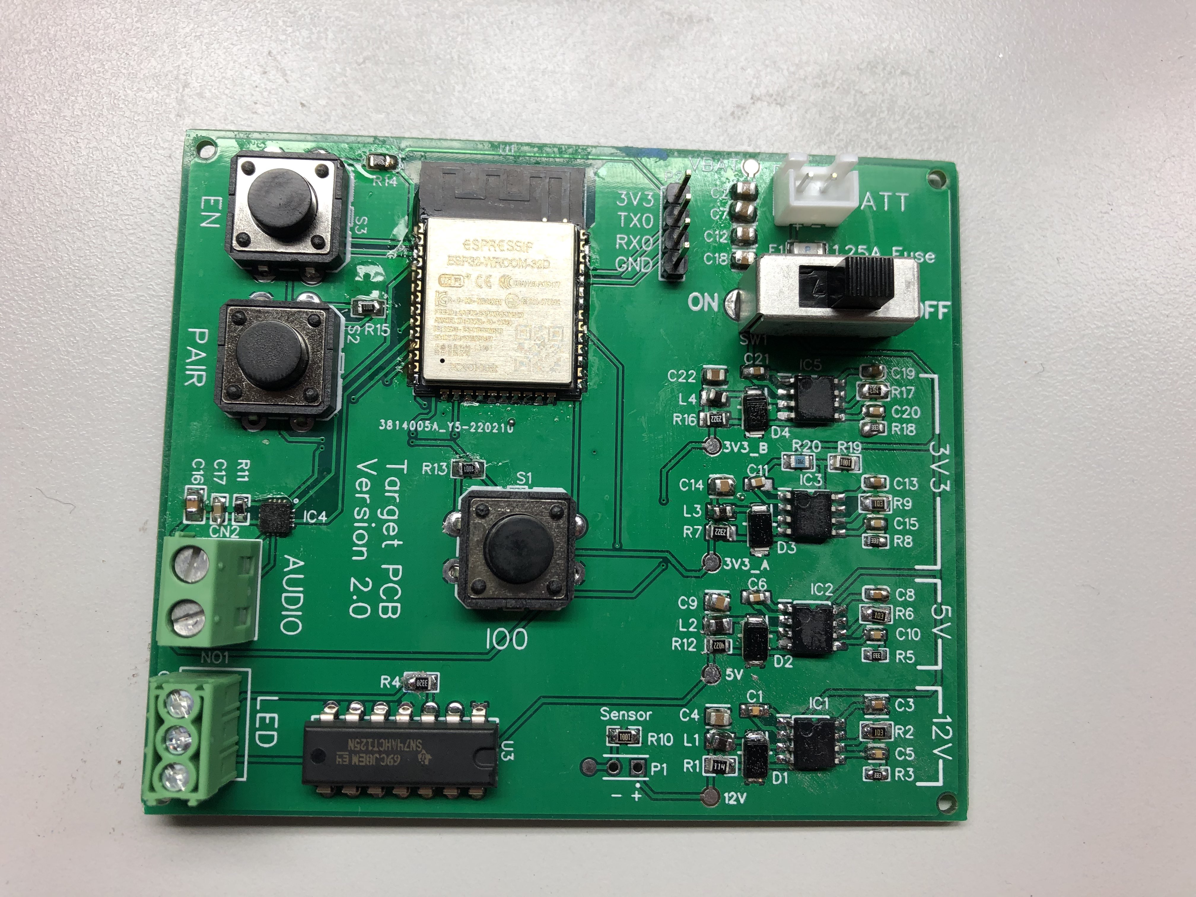 You'll note that the "PAIR" and "ON/OFF" inputs on the target are actually mounted on the reverse side of the board. See the enclosure design for details there.