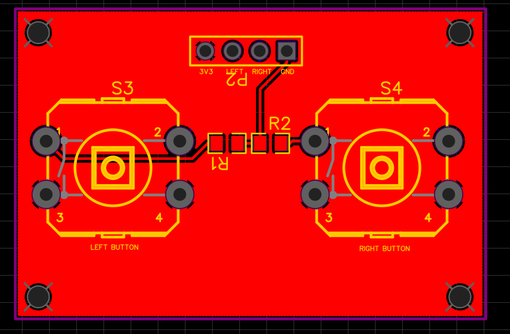 So, these buttons are designed to be active-low. When either button is pressed, their respective line (left/right) drops down to GND. When I first plugged them in, and began using them, however, I noted something... incorrect about their behavior. It was the opposite of what we expected. When pressed, they instead rose up to reach 3V3. In addition, there was also some weird behavior that both buttons would go low when one was pressed, leading to much confusion and attempts to debounce or limit the buttons in software.