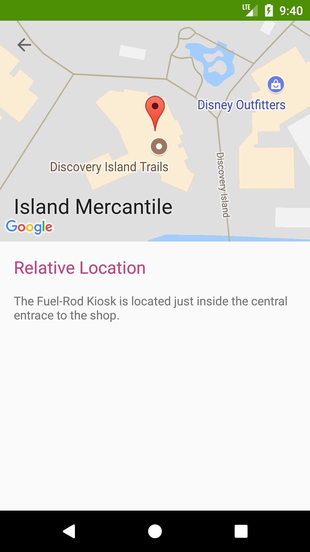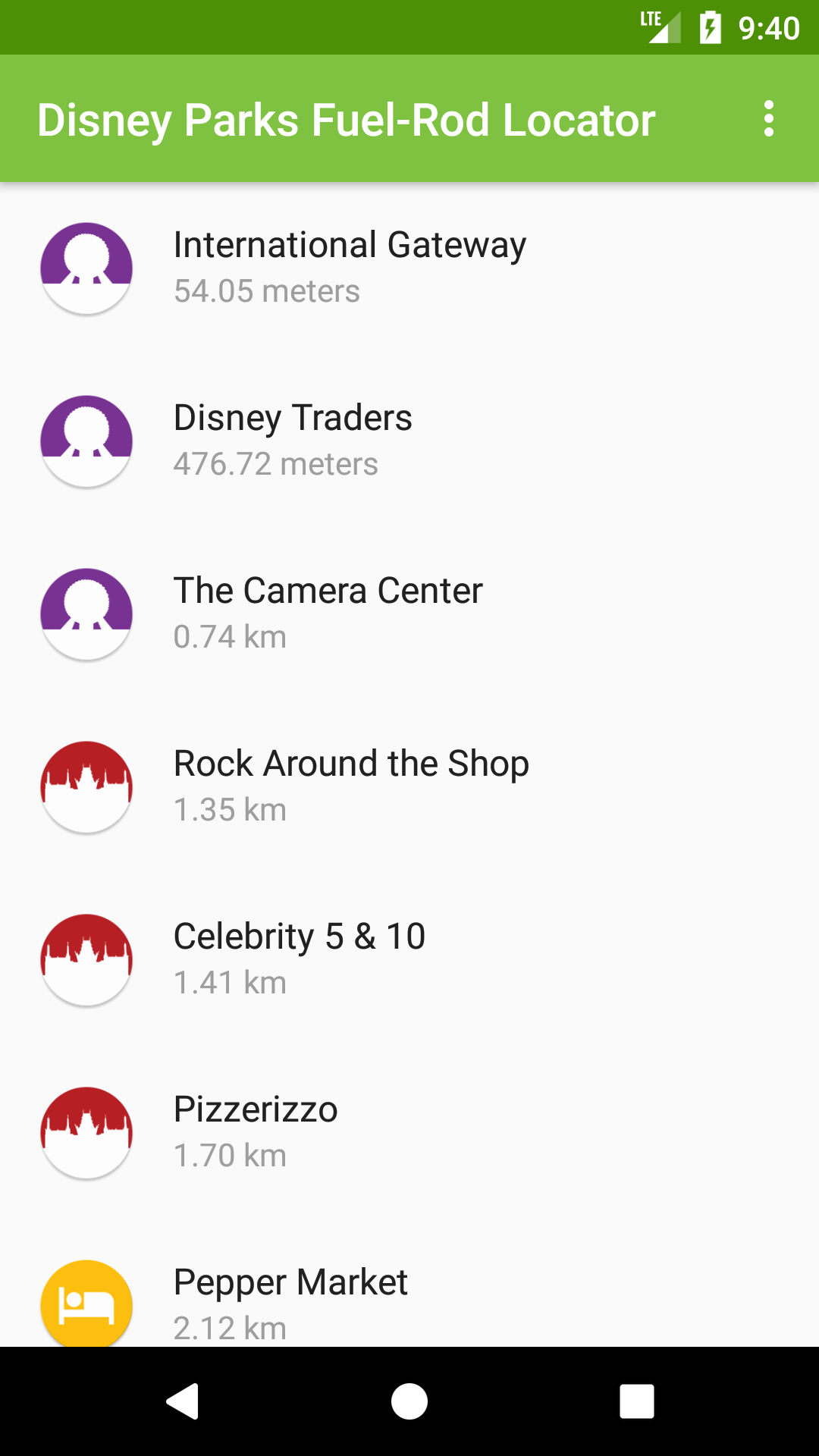 Every location is listed from closest to furthest, with a little icon showing which part of WDW/DLR it is a part of. Add in a little functionality that still shows the data when you turn off GPS functionality, and a little extra details page when you tap on a location, and it's done!