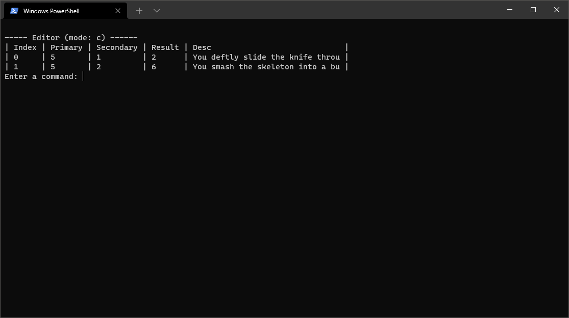 Doors are the way the player traverses the world, and as such, are a critical part of the editor. However, they're pretty simple. Doors have a description and a destination, and that's about it. If the destination of the door is "-1," then the door is locked and cannot be traversed. This - and any door's destination - can be changed through the use of items by the player.