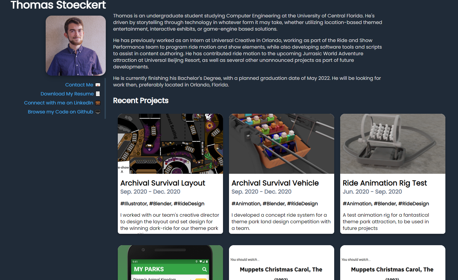 While developing a website takes a lot of time, the part of the development process that actually took me the longest was the documentation of my previous projects. The shortest projects sit at about a ~500 word description, while the longest (currently) have over three thousand words. That's not even counting the wide variety of pictures, assets, and other embedded media that I've organized and dug through in order to help document my past projects.
