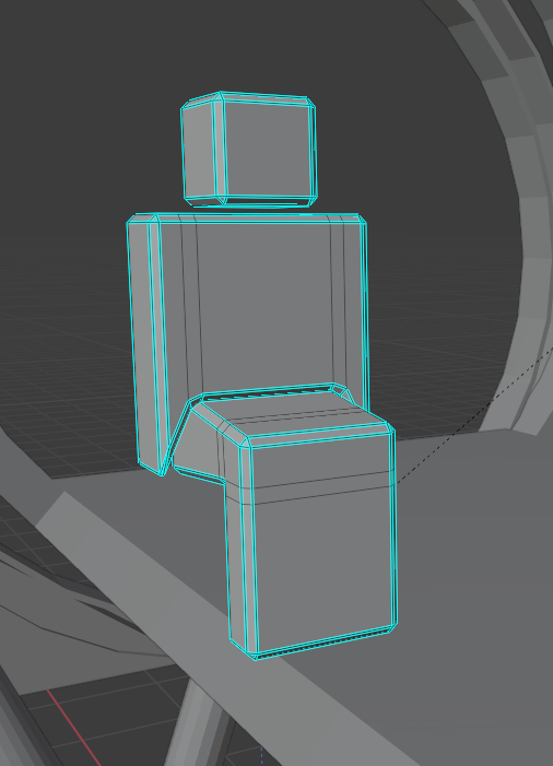 My first goal was making things at the appropriate scale. In Blender, every unit is equal to one meter. With that in mind, I created this rough model of a sitting human, with 95th percentile measurements I found online.