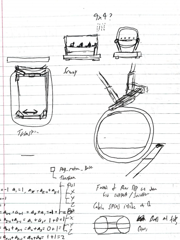 I started this project with a few goals for the ride vehicle: make it unique, make it slightly unfeasible for practical construction, be high-capacity, and have some creatively-different element to the motion.